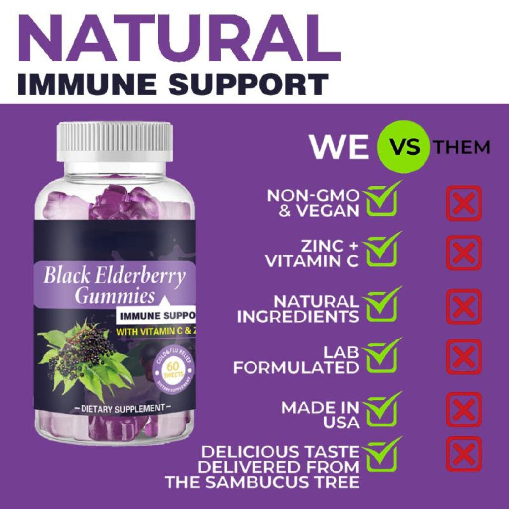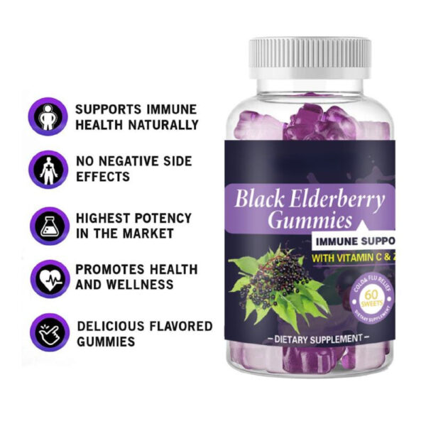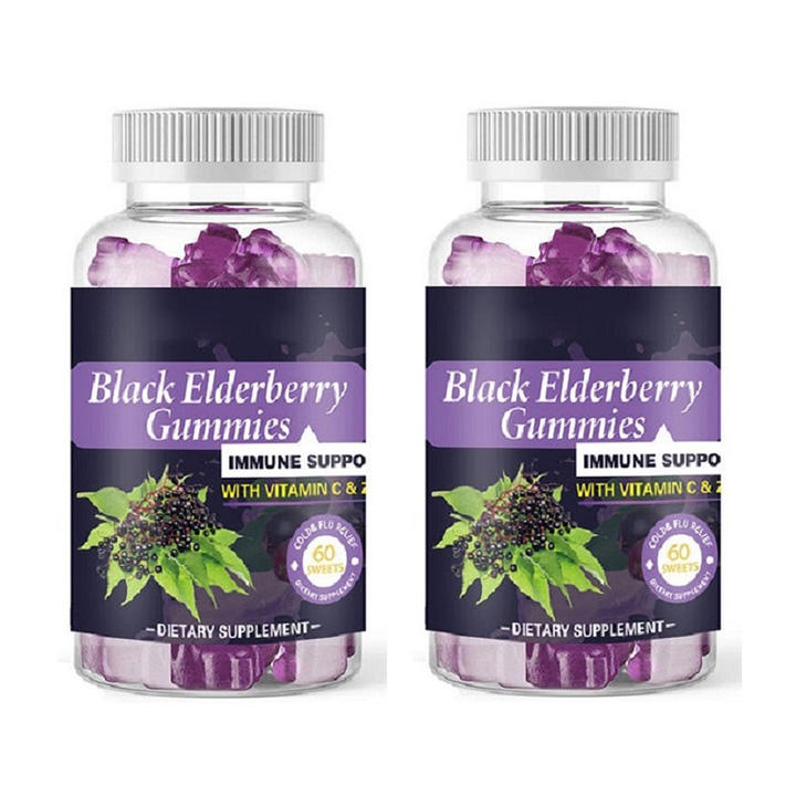 Pure Black Elderberry Gummies Double Strength Immune Support Gummy Vitamins Zinc Supplement Vitamin C Ginger Gummies Dietary Fitness Healthcare Edible