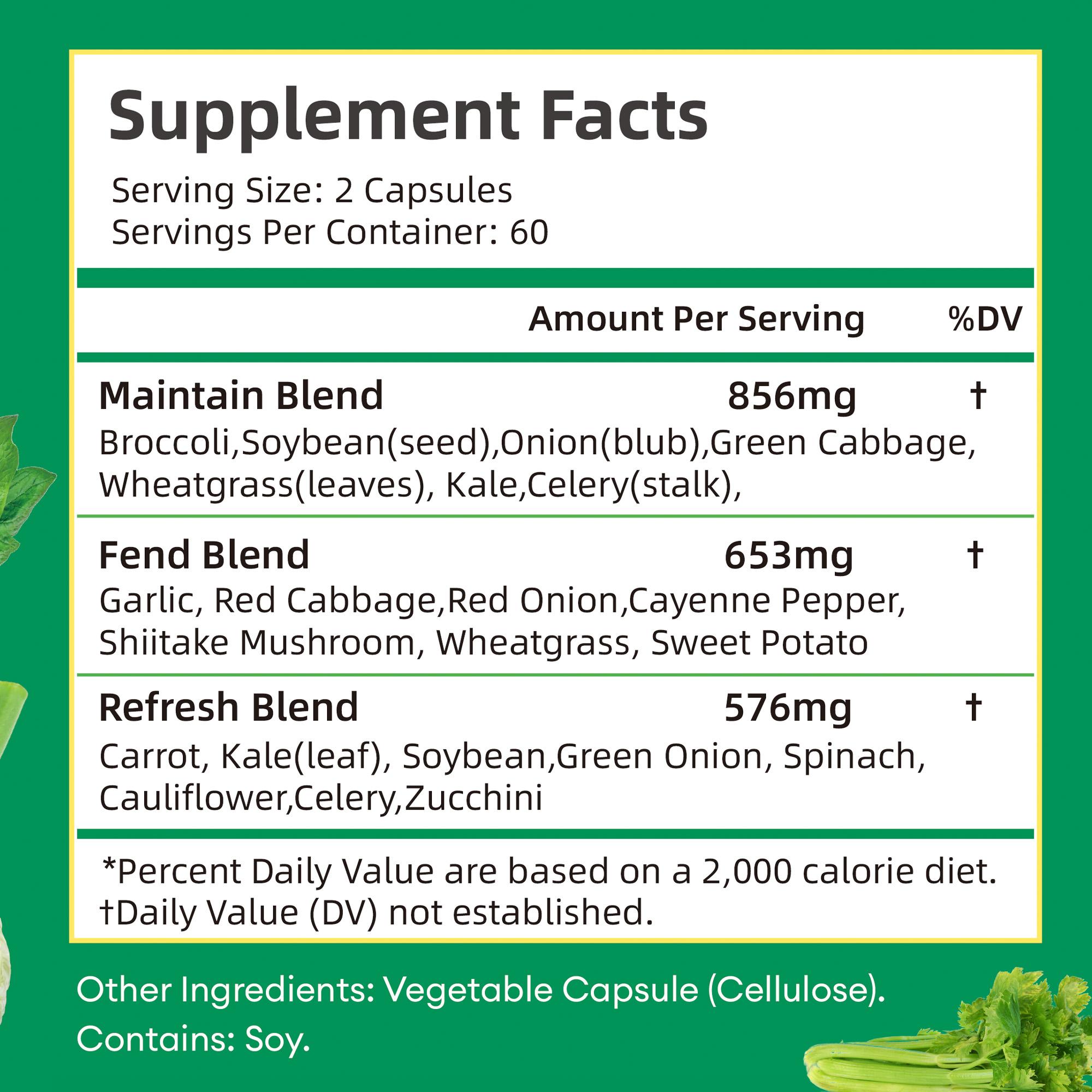 - Veggies Supplement – Boosts Energy and Immunity, Antioxidant, Improves Digestive Health – 120 Capsules